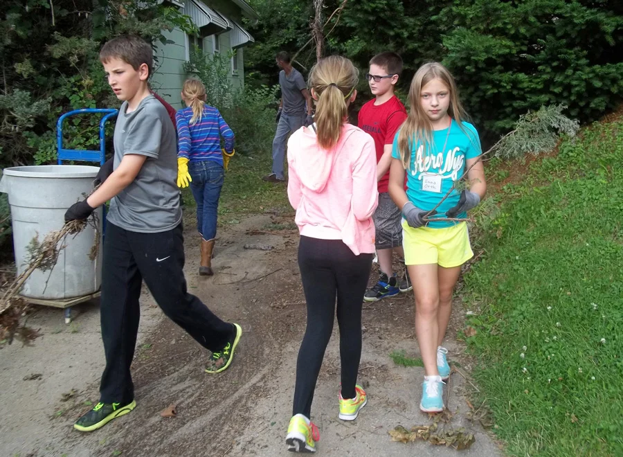 This was the 5th year that Wyatt Park Christian Church has taken the 4th-6th graders on a "junior mission trip" during VBS. Each evening they serve in Jesus' name somewhere in St. Joseph. This year, the first 2 nights were spent working with Inter-Serv, doing a variety of tasks at 2 of their facilities. The third night was at the YWCA and then the last night was spent clearing 2 trailer loads of brush and overgrown weeds from around the home of an elderly church member.
