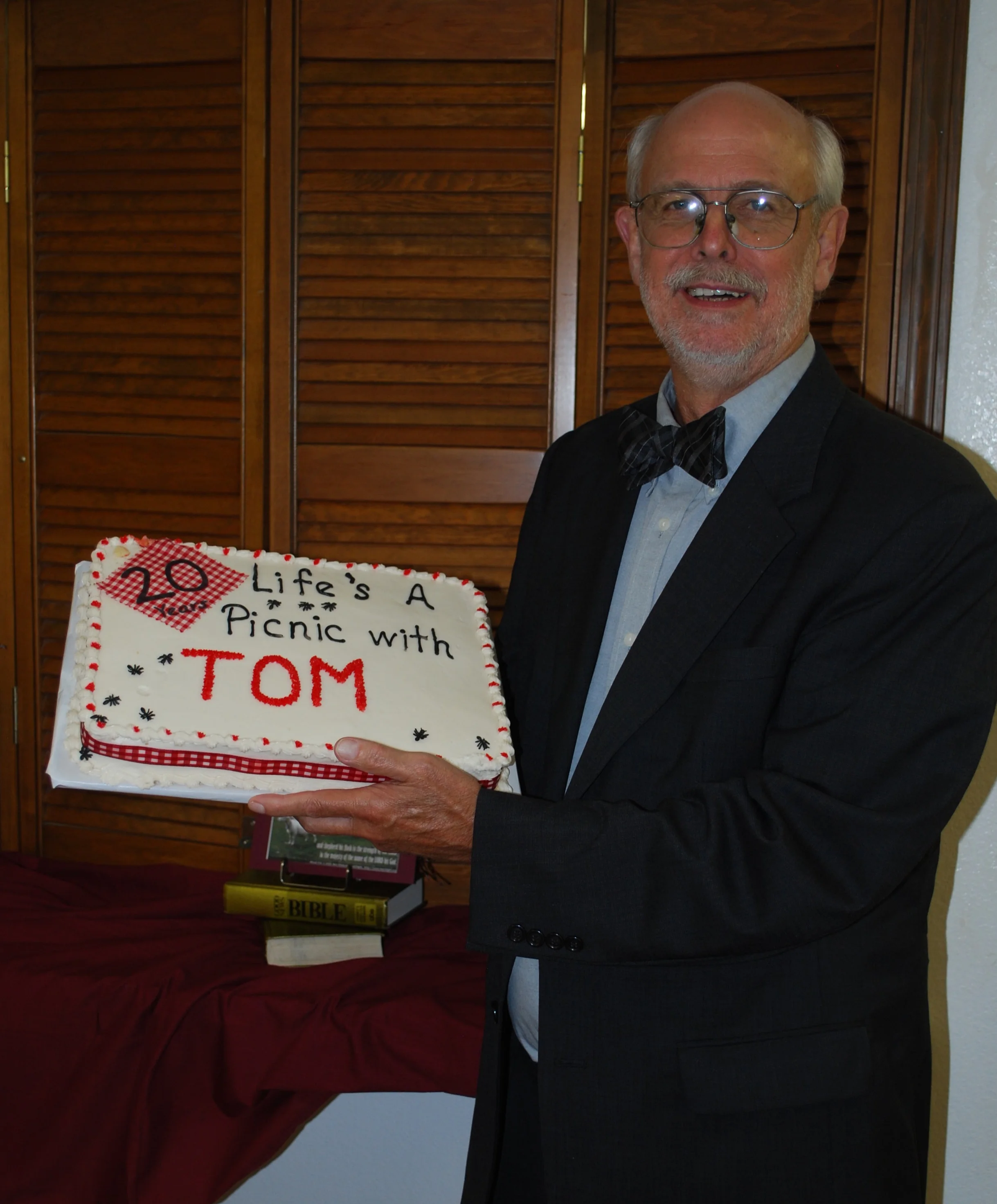 On Sunday, July 23, 2017, current and former members, friends and family gathered, filling the sanctuary, to show their love and appreciation to the Rev. Dr. Tom Geer in celebration of his 20th year serving as minister to the First Christian Church (Disciples of Christ) of Ash Grove. Before worship, the morning service focused on an expressive, yet humor-filled recognition of Tom’s dedicated pastorate both to the church and in the community. A picnic style lunch followed honoring Rev. Geer with the theme, “With Tom, Life is a Picnic! 20 years and counting…”
