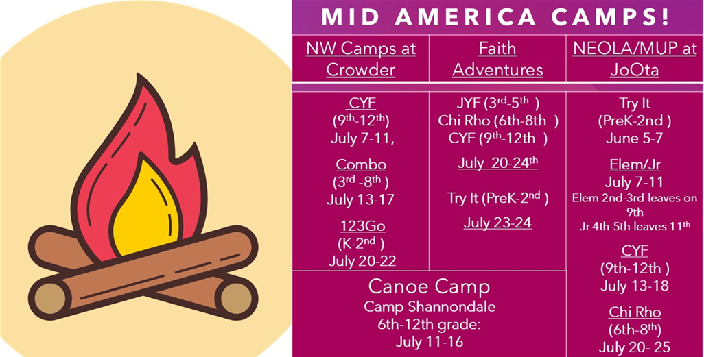 Use the link below to pay camper fees with a credit card. You will only have one transaction for up to 10 campers, even if they are attending different programs. For each camper, you’ll be asked the name, program, and amount the church is paying.